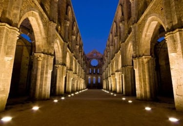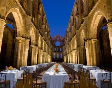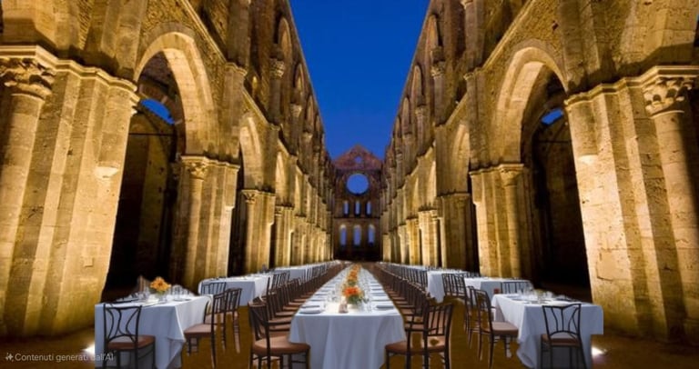 Immaginate i vostri invitati vestiti da cavalieri per una cena di gala presso la maestosa abbazzia di San Galgano!